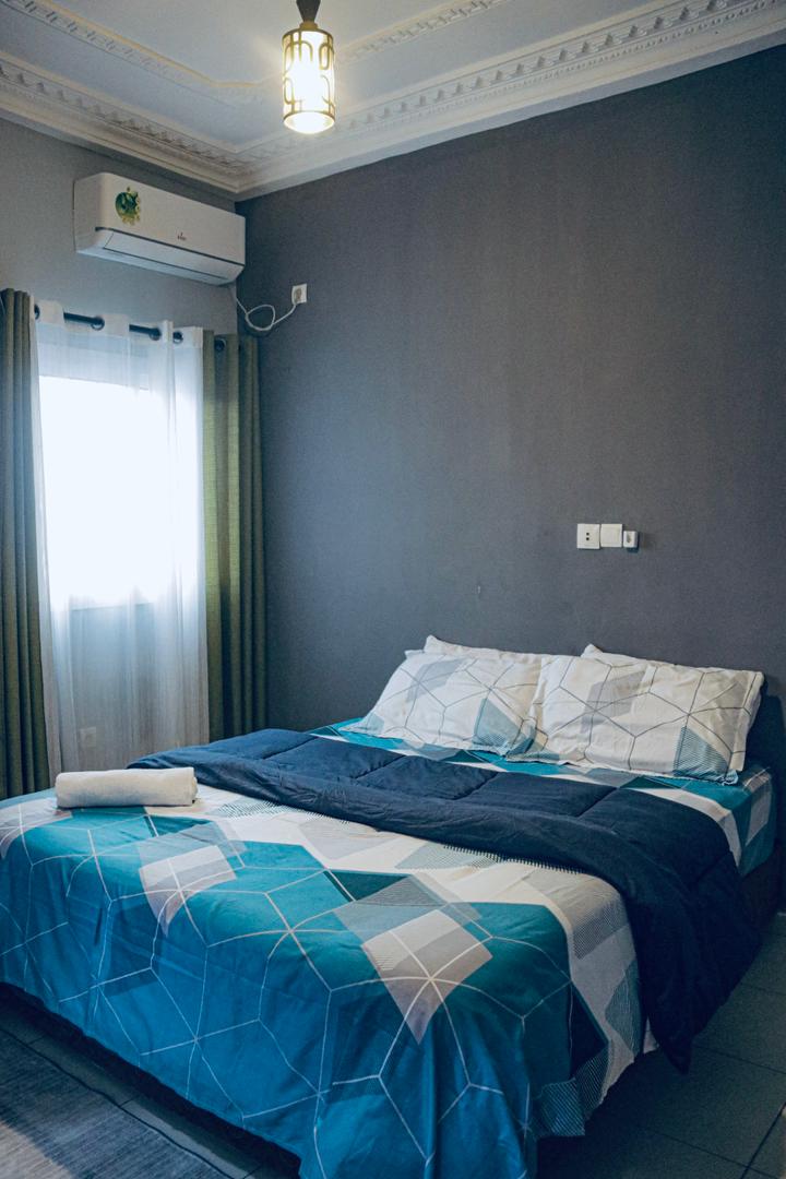 Studio climatisé entièrement meublé avec cuisine équipée, Wi-Fi, parking sécurisé et groupe électrogène. Idéal pour jeune cadre ou expatrié.